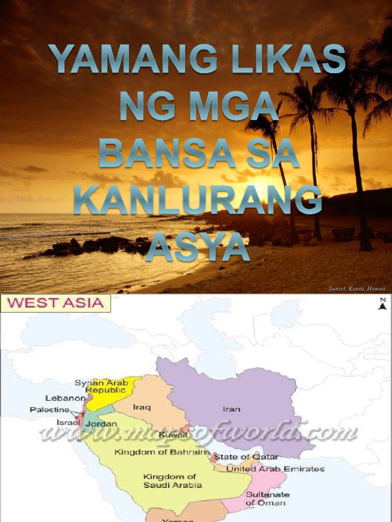 Ano ang mga yamang lupa ng Pilipinas. KANLURANG ASYA MGA BULUBUNDUKIN AT DISYERTO Paghahayupan ang pangunahing gawaing mga taong naninirahan dito Iran Iraq. Gitnang Asya Silangang Asia Timog Asya Timog-Silangang Asya kun saan naroroon ang ating bansang Pilipinas at Kanlurang Asya.