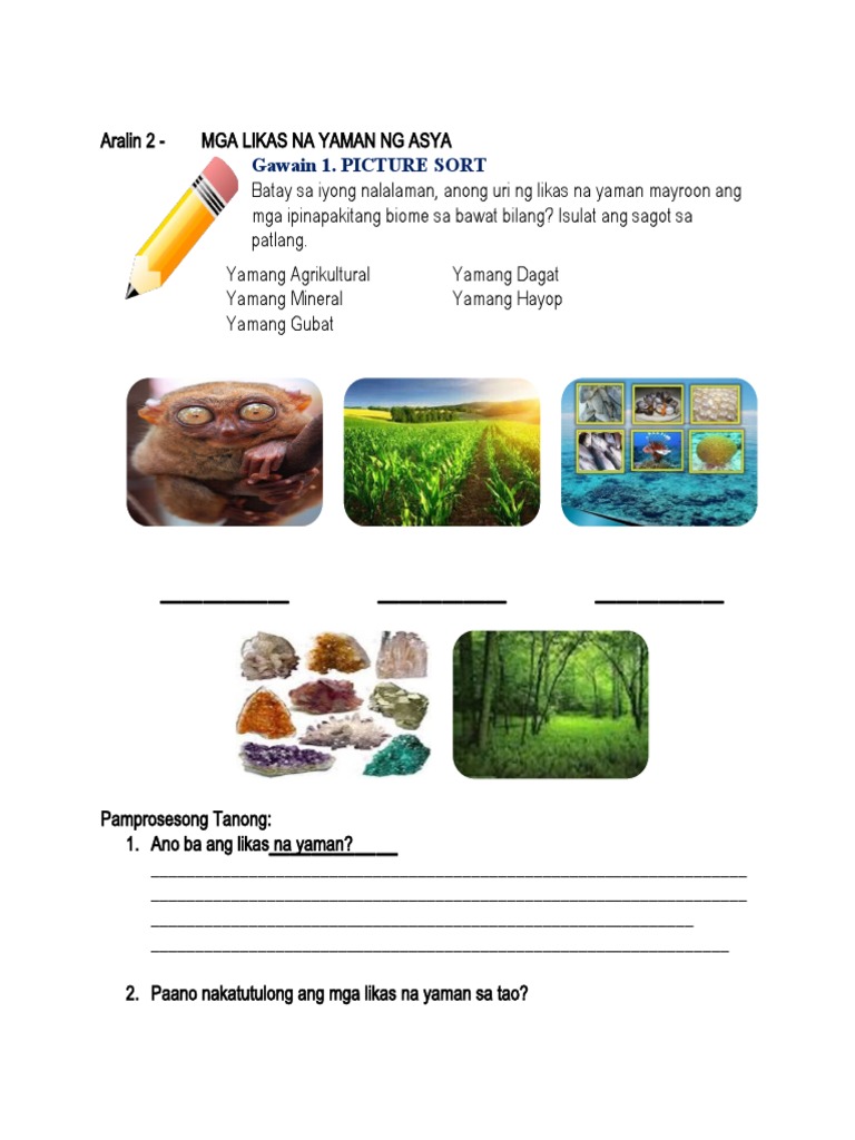 Mga Likas Na Yaman Ng Asya Picture Sort Pdf