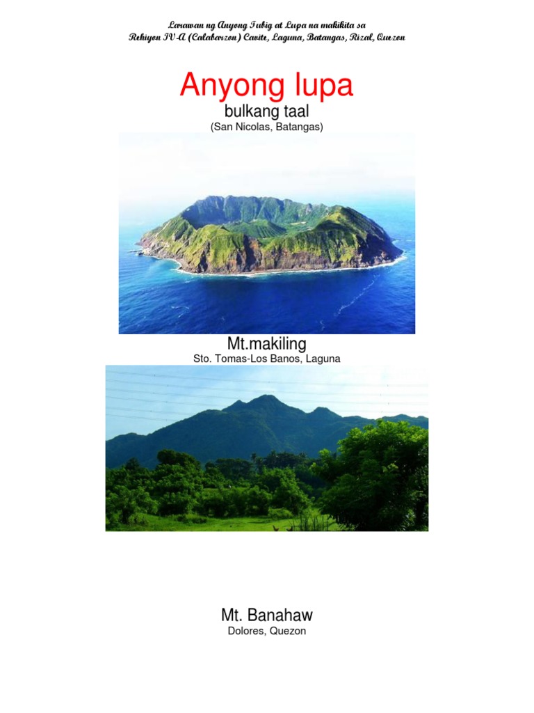 Rehiyon Iv A Calabarzon Anyong Tubig At Anyong Lupa Pdf