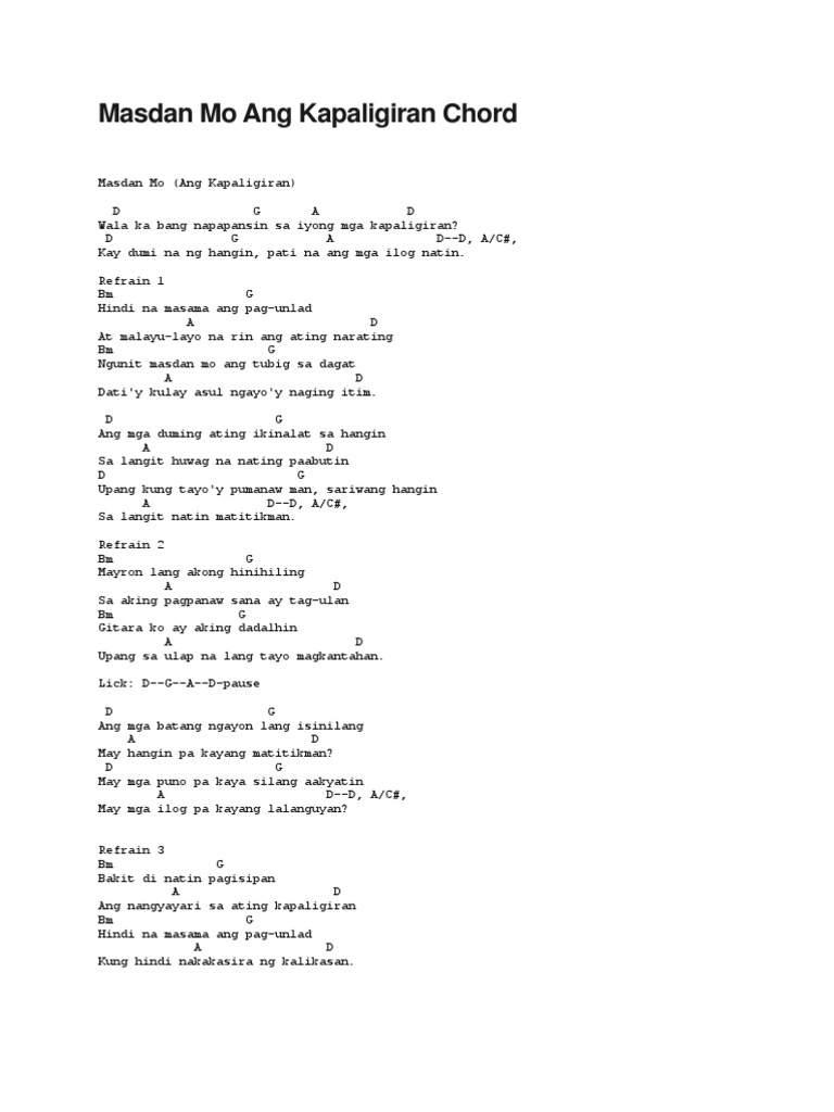 Masdan Mo Ang Kapaligiran Chord Pdf